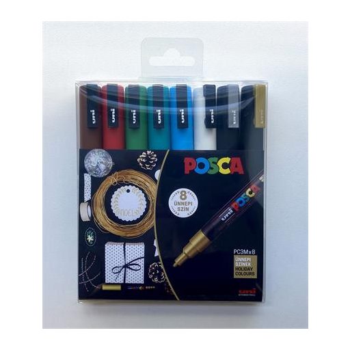 Dekormarker készlet, 0,9-1,3 mm, UNI "Posca PC-3M Holiday", 8 különböző szín