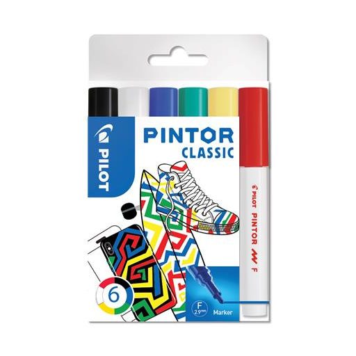Dekormarker készlet, 1 mm, PILOT "Pintor F" 6 különböző klasszikus szín