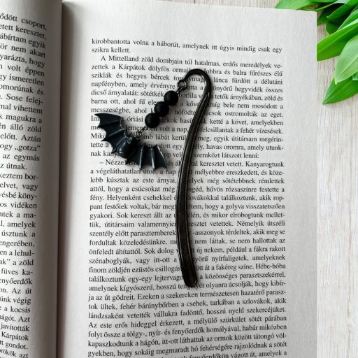 A denevért és a 3db matt ónix 8mm gyöngyöt fekete könyvjelző alapra tettük.