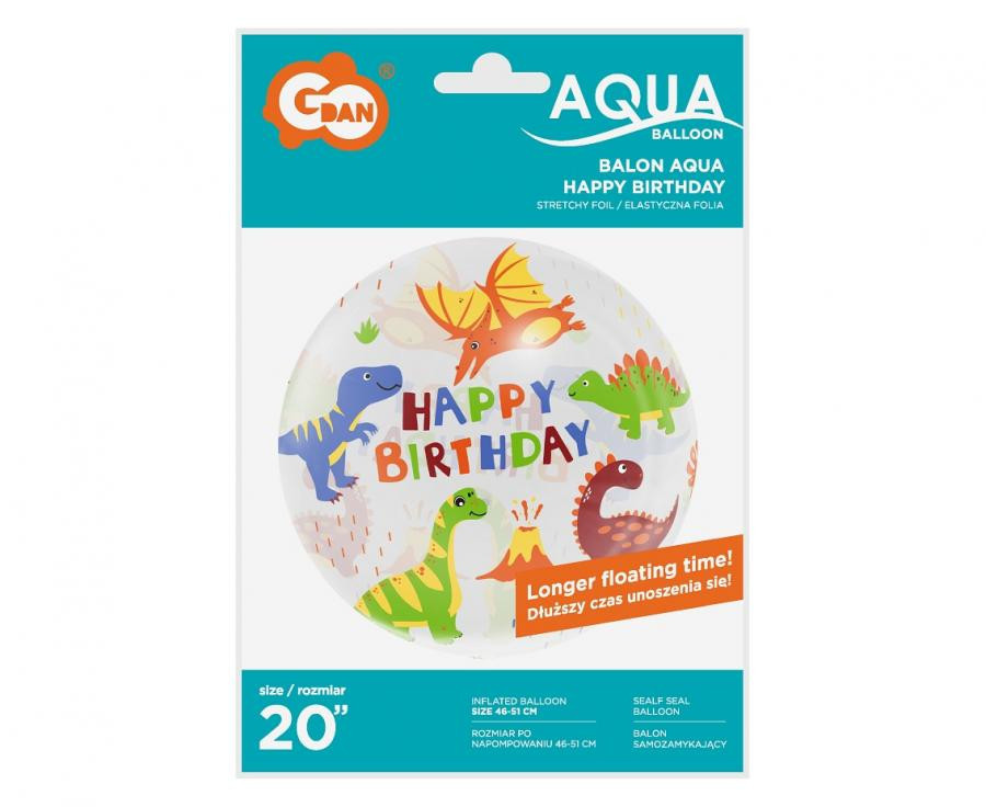 Dinoszaurusz Aqua Happy Birthday gömb fólia lufi 46 cm