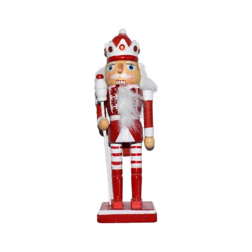 Diótörő 20 cm-es, fehér-piros ruhában, fehér jogarral a kezében