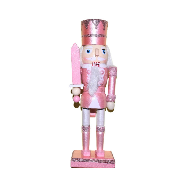 Diótörő 20 cm-es, rózsaszín ruhában és kalapban, rózsaszín karddal