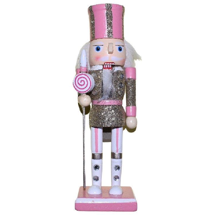 Diótörő 38 cm-es, aranyozott, csillámos ruhában , rózsaszín kalapban