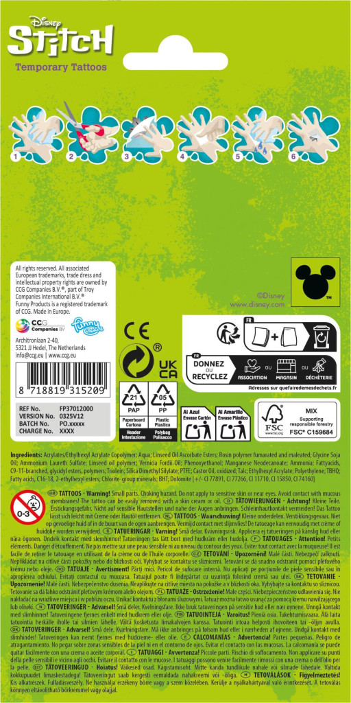Disney Lilo és Stitch, A csillagkutya Extrovert tetkó 12 db-os
