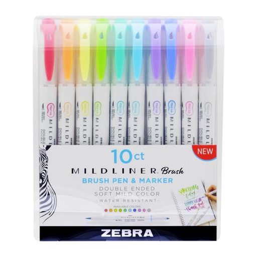 Ecsetirón készlet, 0,5/0,7 mm, kétvégű, ZEBRA "Mildliner Brush&Marker", 10 különböző szín