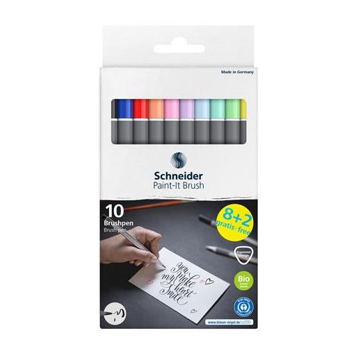 Ecsetirón készlet, hajlékony heggyel, SCHNEIDER "Paint-It 070", 10 különböző szín