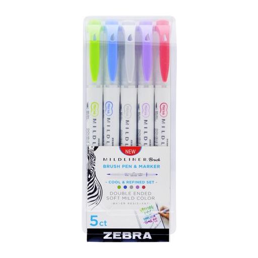 Ecsetirón készlet, kétvégű ZEBRA "Mildliner Cool & Refined", 5 szín