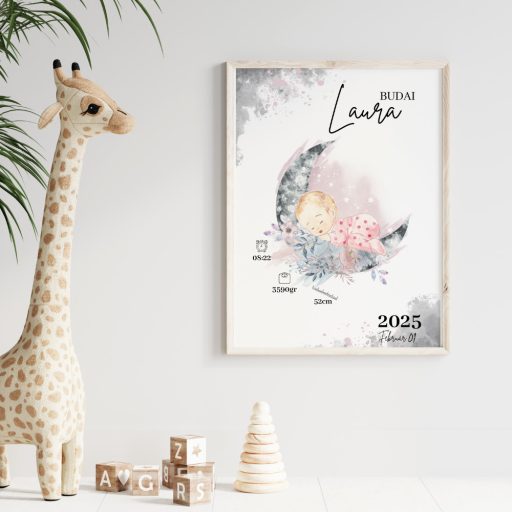 Egyedi névre szóló kép születési adatokkal gyerekszobába.