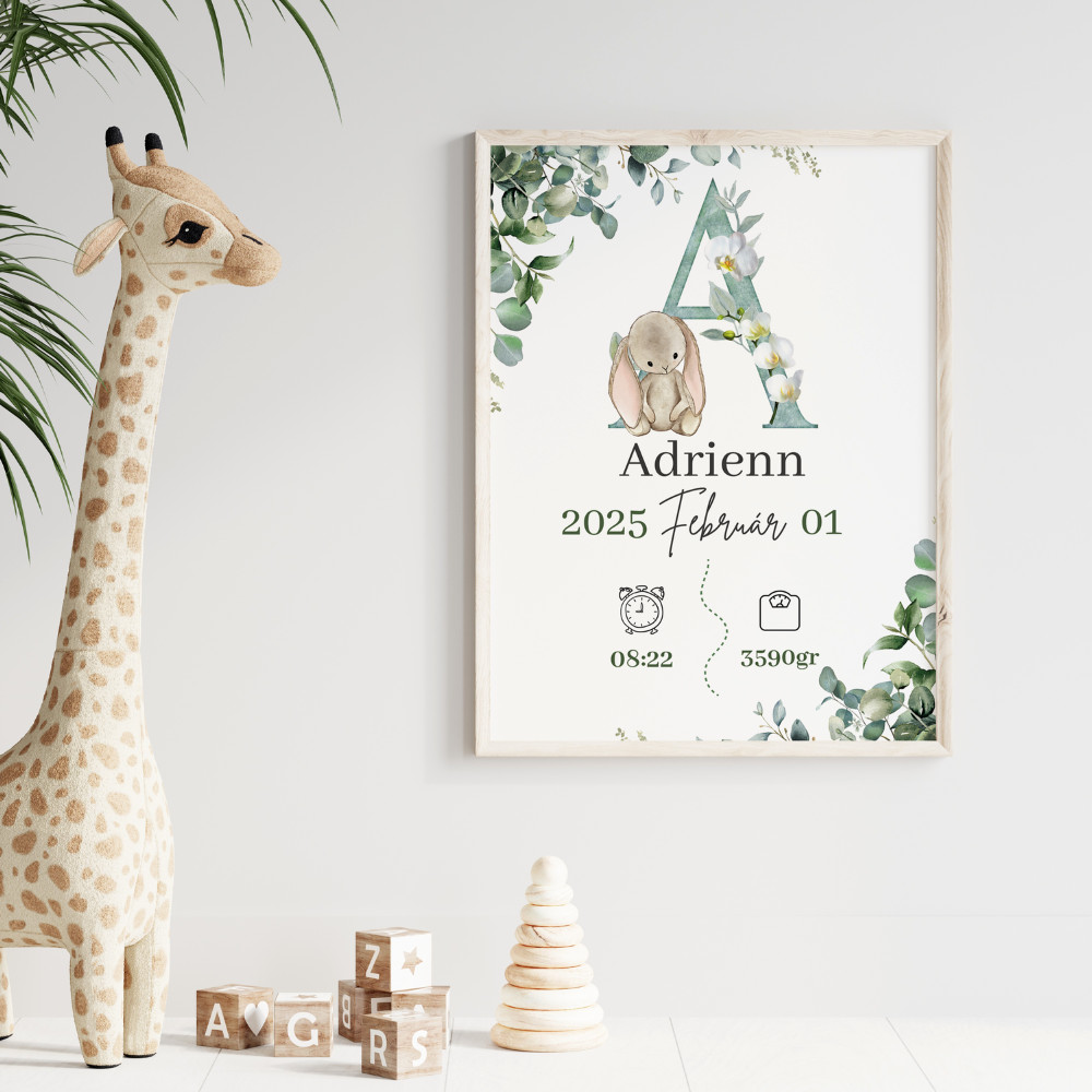 Egyedi névre szóló kép születési adatokkal gyerekszobába.