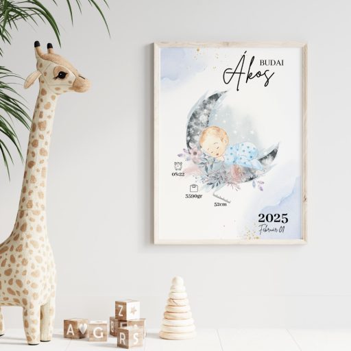 Egyedi névre szóló kép születési adatokkal gyerekszobába.