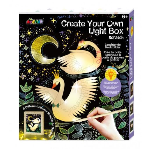 Te is szereted a fénylő égősorokat, a világító képeket és a hangulatvilágítást a szobádban? Akkor ezt a kreatív játékot neked találták ki, hiszen a csomagban található eszközök segítségével és a különleges karckép technikával egyedi és csodaszép dekorációt készíthetsz magadnak! A dobozban 8 darab karckép közül választhatod ki, melyiket szeretnéd kidekorálni és a mellékelt keretbe helyezni, hogy azután a LED fénysort is beillesztve megvilágíthasd. Különleges éjjeli fény, amelyet mindenki megcsodál majd és kellemes hangulatot teremt a szobádban!