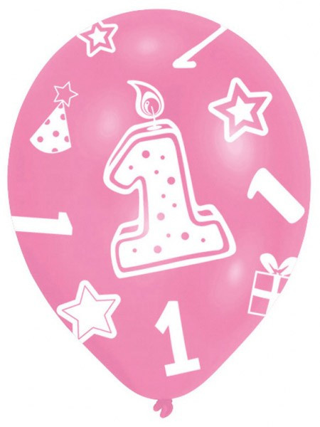 Első születésnap Pink léggömb, lufi 6 db-os 11 inch (27,5 cm)