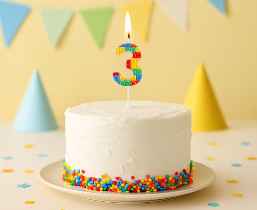 Építőkocka tortagyertya, számgyertya 3-as