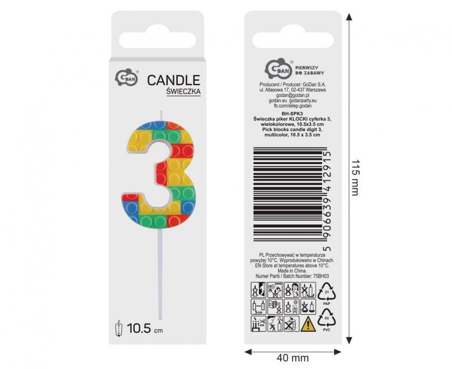 Építőkocka 3-as Pick Blocks tortagyertya, számgyertya