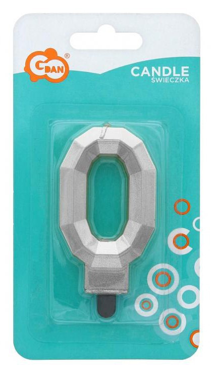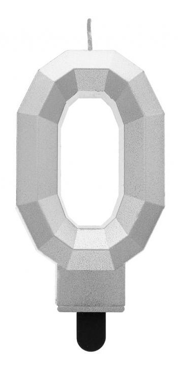 Ezüst 0-ás Diamond Metallic számgyertya, tortagyertya