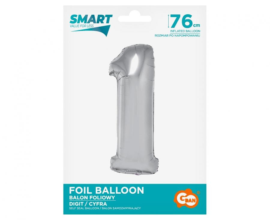 Ezüst 1-es szám fólia lufi 76 cm