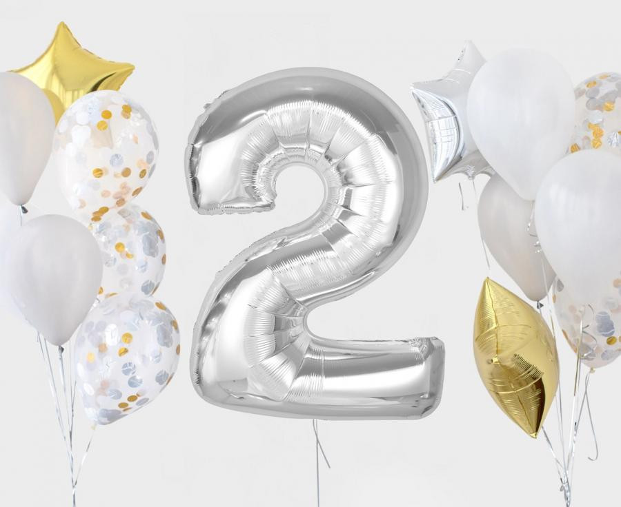 Ezüst 2-es szám fólia lufi 92 cm