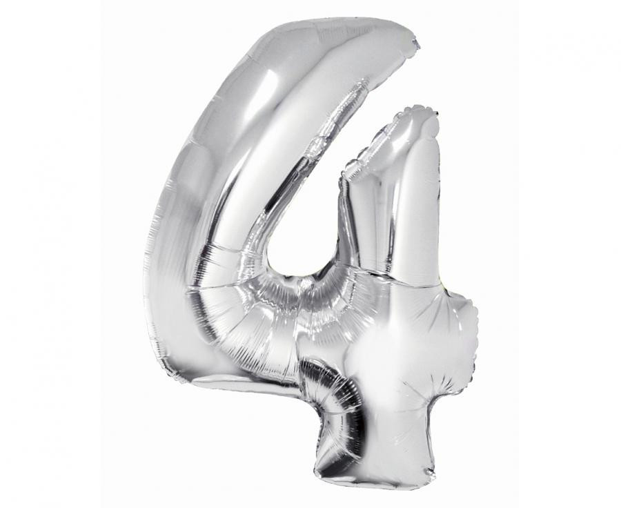 Ezüst 4-es szám fólia lufi 76 cm
