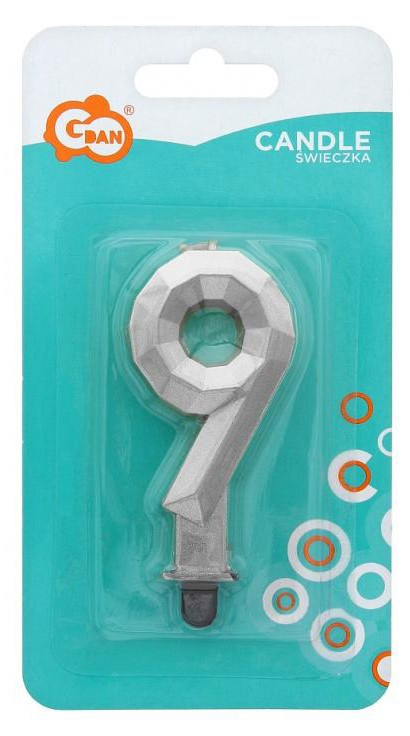 Ezüst 9-es Diamond Metallic számgyertya, tortagyertya
