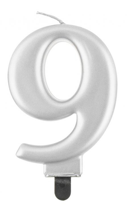 Ezüst 9-es Metallic számgyertya, tortagyertya