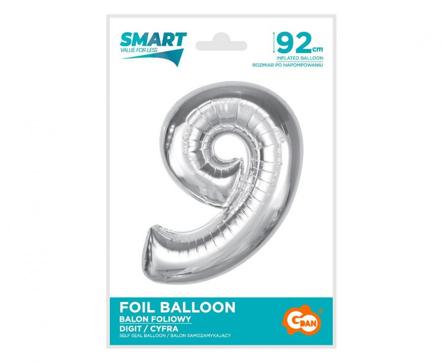 Ezüst 9-es Silver szám fólia lufi 92 cm