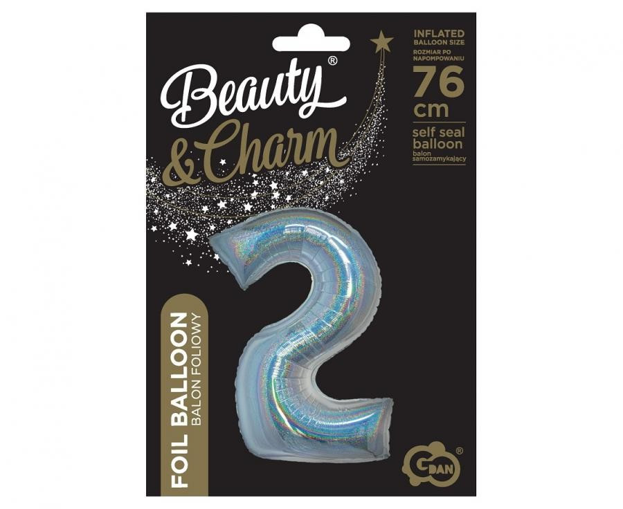 Holographic Silver, Ezüst 2-es szám fólia lufi 76 cm