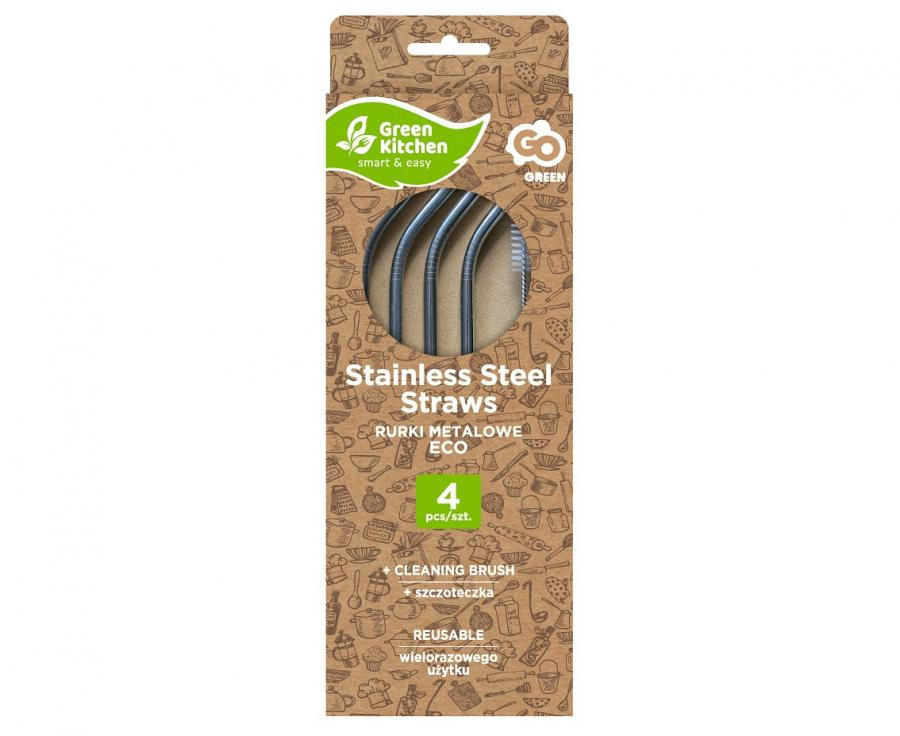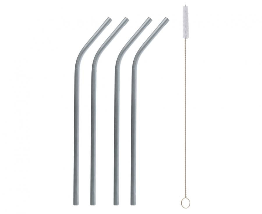 Ezüst Silver fém szívószál 4 db-os + kefe