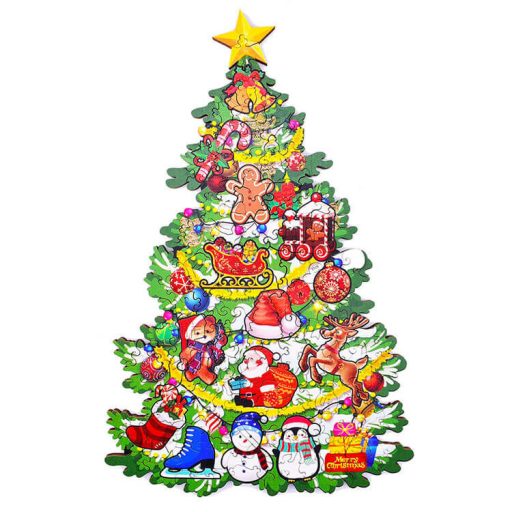 Színes fa puzzle karácsonyfa, mely lézervágott , festett, apró állatfigurákból és növényformákból tevődik össze. Fejleszti a koncentráció, memóriát és kézügyességet. A fiatalabb korosztálytól a legidősebb generációig nagy élményt nyújt az összerakásuk.