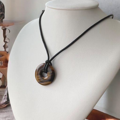 Tigrisszem fánk medál fekete viaszolt, bőrhatású nyakláncon