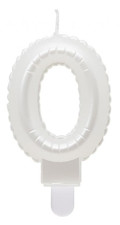 Fehér 0-ás Pearly számgyertya, tortagyertya