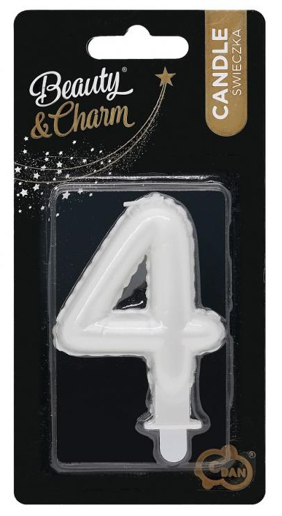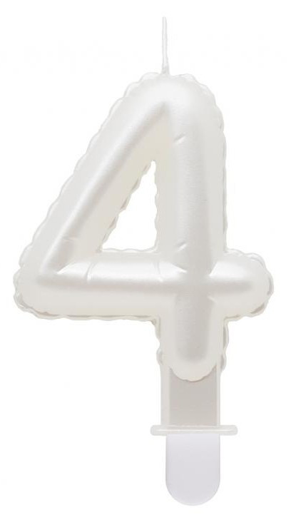 Fehér 4-es Pearly számgyertya, tortagyertya