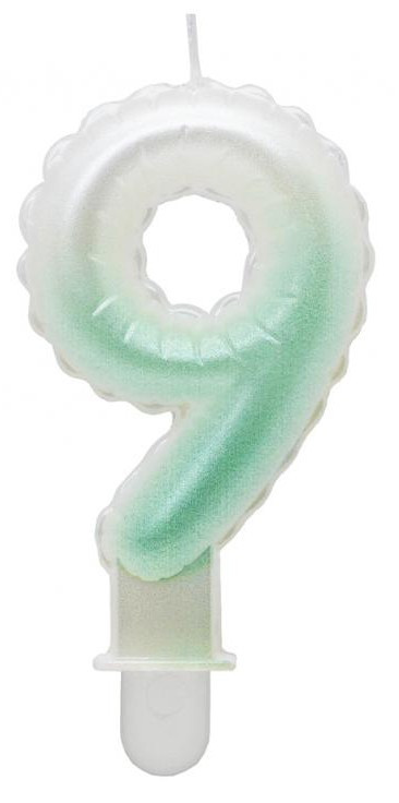 Fehér-Zöld 9-es Ombre számgyertya, tortagyertya