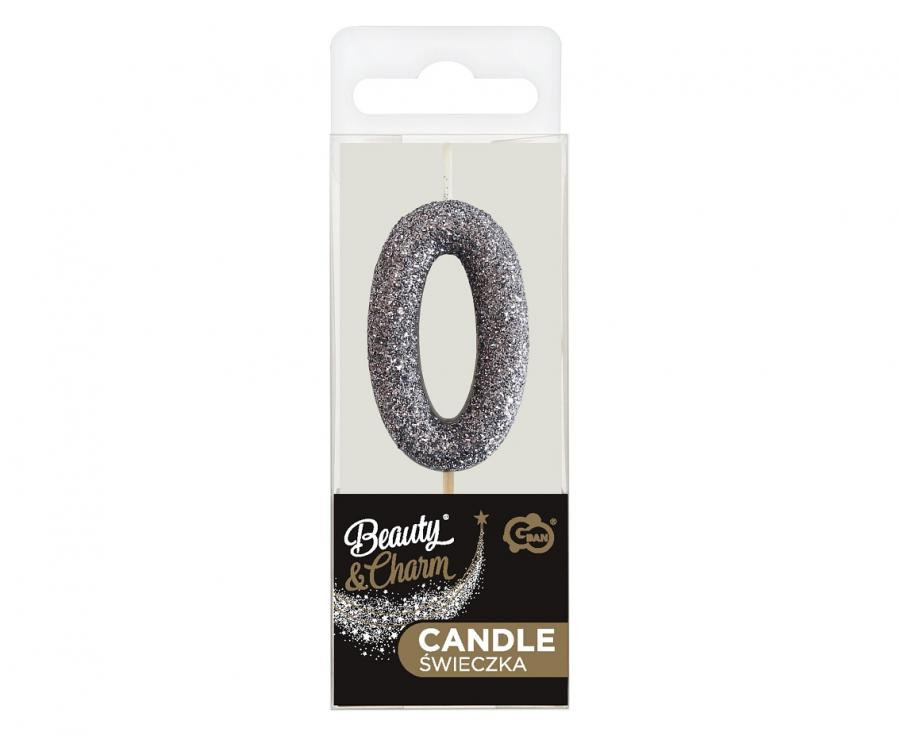Glitter Black, Fekete számgyertya, tortagyertya 0-ás