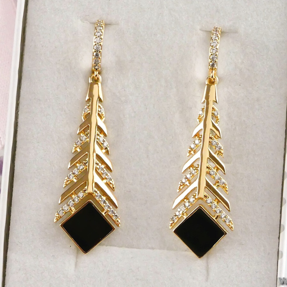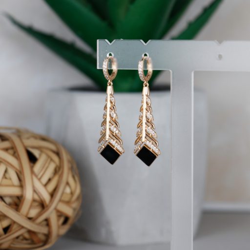 Kiváló minőségű, elegáns fekete köves antiallergén fülbevaló, amely tökéletes választás minden alkalomra. A fülbevaló 18 K színű bevonatú, így gyönyörű, fényes felületével emeli ki viselőjének stílusát.