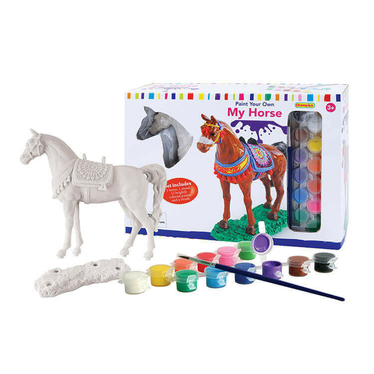 Fesd meg saját, egyedi műgyanta lovadat! A csomag tartalma: 1 műgyantából készült ló, 1 ecset, 12 színű festék. Hogyan fess? Használd a mellékelt ecsetet és festéket. Festés után hagyd száradni 24 órát. Tippek: Adhatsz néhány csepp vizet a festékhez, ha az száraz. Szabadon keverheted a színeket, ha új színt szeretnél kapni.
