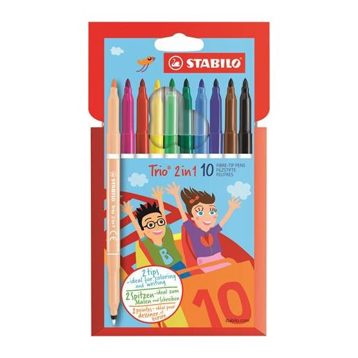 Filctoll készlet, 0,5-2 mm, kétvégű, STABILO "Trio 2 in 1", 10 különböző szín