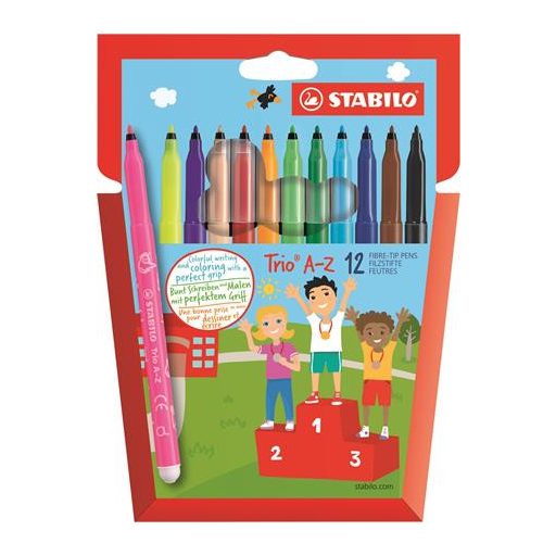 Filctoll készlet, 0,7 mm, STABILO "Trio A-Z", 12 különböző szín
