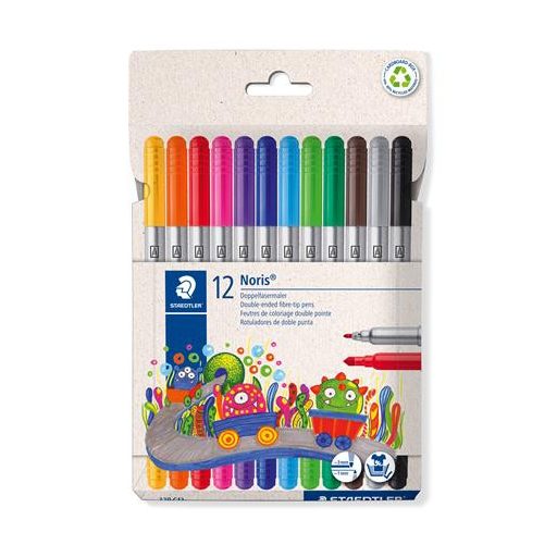 Filctoll készlet, 1-3 mm, kétvégű, kimosható, STAEDTLER "Noris® 320, 12 különböző szín