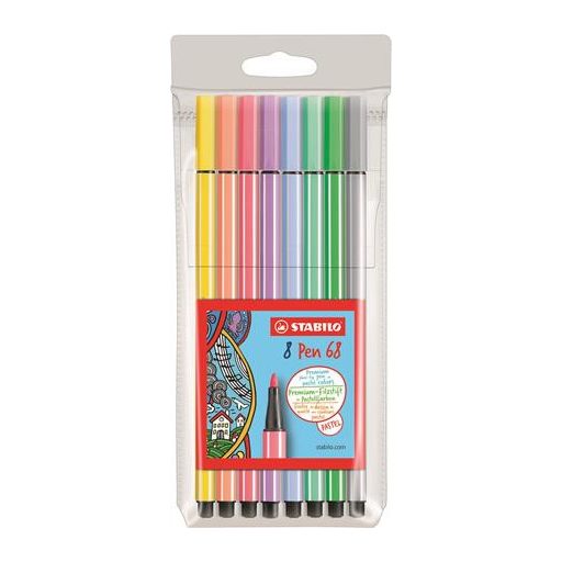 Filctoll készlet, 1 mm, STABILO "Pen 68", 8 pasztell szín
