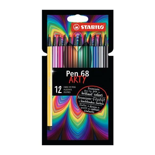 Filctoll készlet, 1 mm, STABILO "Pen 68 ARTY", 12 különböző szín