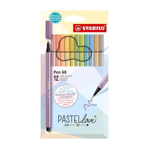 Filctoll készlet, 1 mm, STABILO "Pen 68 Pastellove", 12 különböző szín