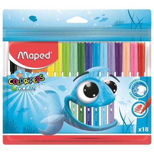 Filctoll készlet, 2 mm, kimosható, MAPED "Color'Peps Ocean", 18 különböző szín