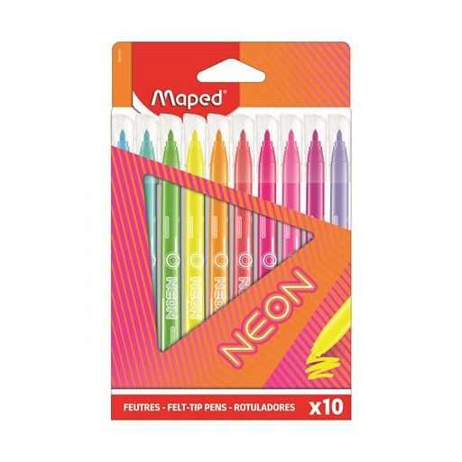 Filctoll készlet, 2,8 mm, kimosható, MAPED "Neon", 10 különböző szín