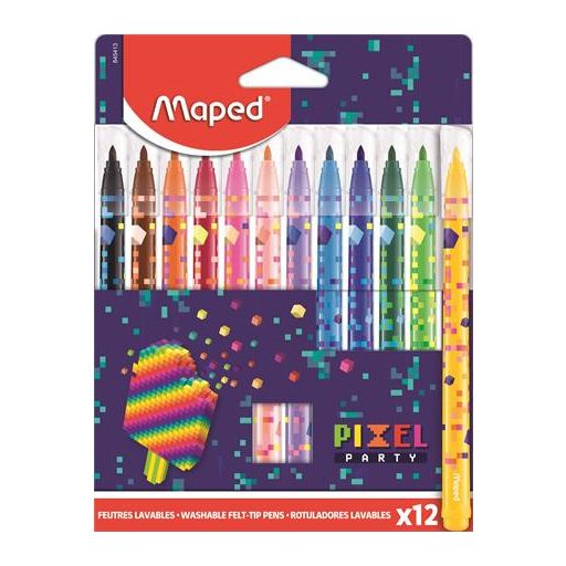 Filctoll készlet, 2,8 mm, kimosható, MAPED "Pixel Party", 12 különböző szín