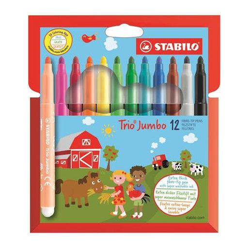 Filctoll készlet, 3 mm, STABILO "Trio Jumbo", 12 különböző szín