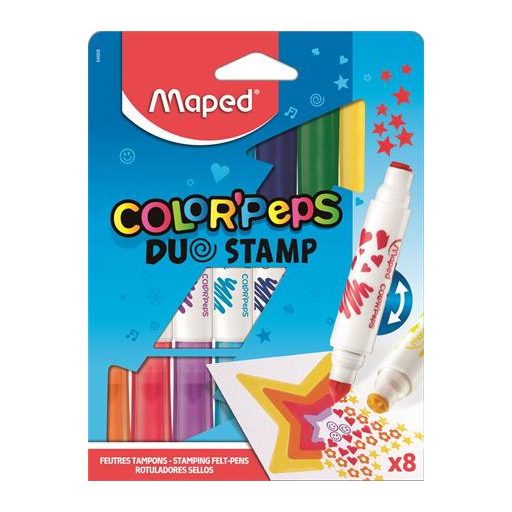 Filctoll készlet, 7,5 mm, kétvégű, MAPED "Color'Peps Duo Stamp" 8 különböző szín és minta