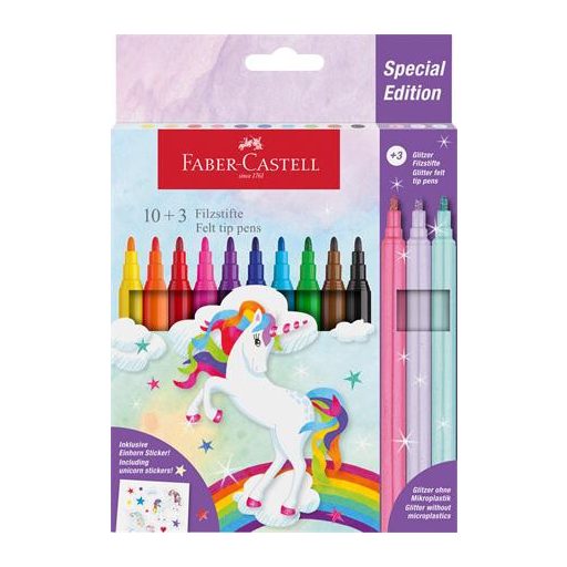 Filctoll készlet, FABER-CASTELL "Unikornis" 10 különböző szín + 3 csillámos