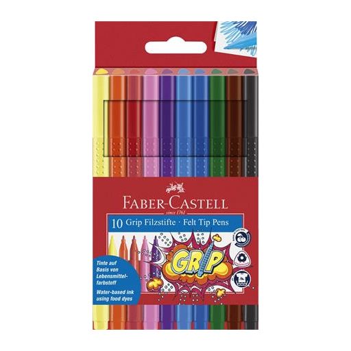 Filctoll készlet, háromszögletű, FABER-CASTELL "Grip", 10 különböző szín