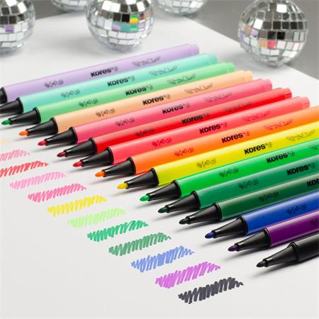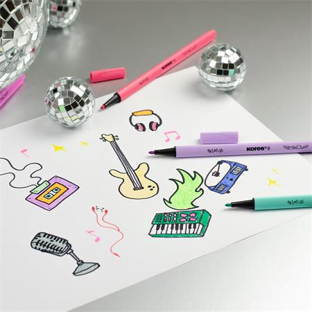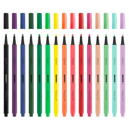 Filctoll készlet, kimosható, KORES "K-beats", 15 különböző szín