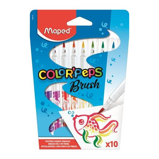 Filctoll készlet, kimosható, ecsetjellegű, MAPED "Color ’Peps Brush", 10 különböző szín